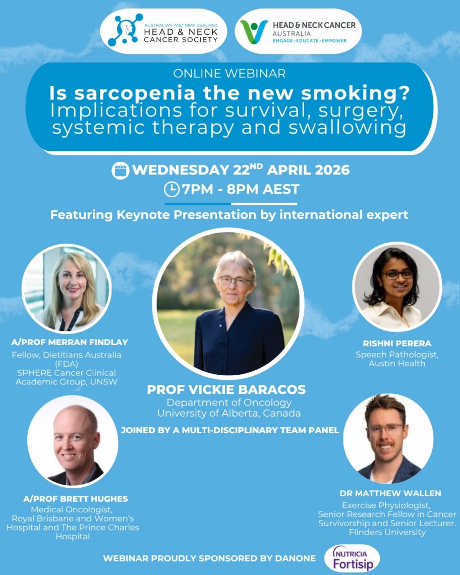 This webinar is relevant for multidisciplinary clinicians and researchers working in Head and Neck Cancer, including allied health, nursing, oncology and surgery.