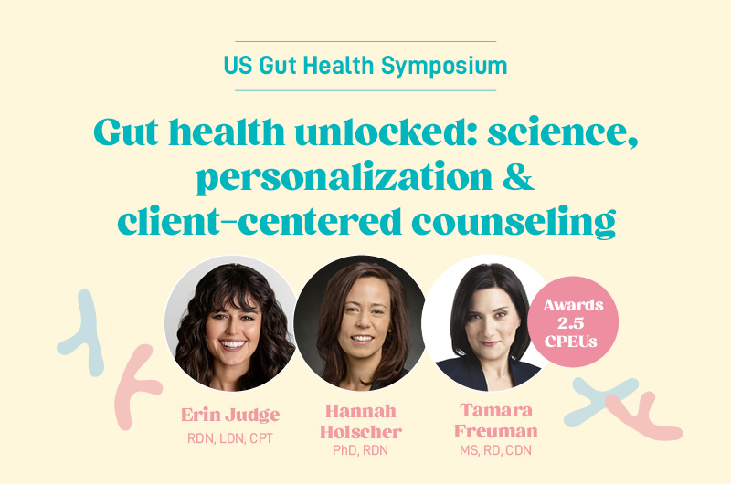 A powerhouse trio of RD gut health experts, Erin Judge RDN, LDN, CPT, Hannah Holscher, PhD, RDN, and Tamara Freuman MS, RD, CDN, will share insights on: