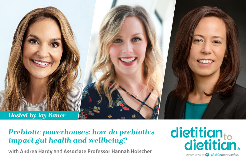 Probiotics… postbiotics… microbiome… microbiota… dietary fibre… there’s a lot of gut health hype our clients are trying to wrap their heads around right now. In our next episode of Dietitian to Dietitian, NBC’s Today Show nutrition and health expert Joy Bauer, Associate Professor Hannah Holscher, PhD, RD and Andrea Hardy, RD explore the science behind the latest buzzword in gut health: prebiotics. Join us to discuss how prebiotics can impact immunity, digestion and weight, whether prebiotics work with probiotics to support gut health, and how you can coach your clients towards perfecting their prebiotic intake.