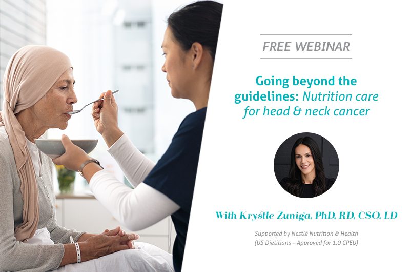 Going beyond the guidelines: Nutrition care for head & neck cancer” awards 1.0 CPEUs in accordance with the Commission on Dietetic Registration’s CPEU Prior Approval Program.