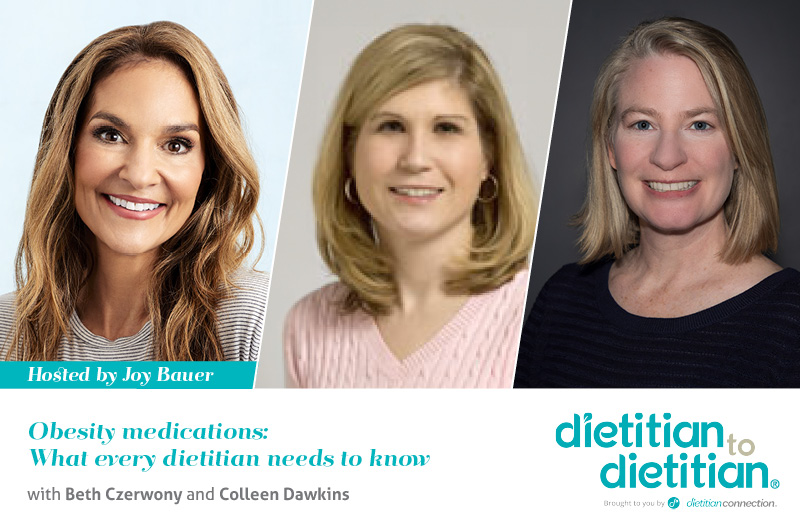 With the ongoing development of medications used in the treatment of obesity and weight management, dietitians must stay on top of the latest information and understand how they fit into a comprehensive treatment plan. In our next episode of Dietitian to Dietitian, NBC’s Today Show nutrition and health expert Joy Bauer along with Beth Czerwony MS, RD, CSOWM, LD and Colleen Dawkins, FNP-C, RDN, CSOWM discuss the integration of GLP-1 medications in nutrition therapy: the indications for use, who is most likely to have success, and the potential side effects and how to manage them. You’ll learn best practices for collaborating effectively with your medical team and what to do when medication isn’t the answer for a patient. You’ll leave with a deeper understanding of how these medications can complement dietary interventions and the vital role of the dietitian in providing patient-centered care.